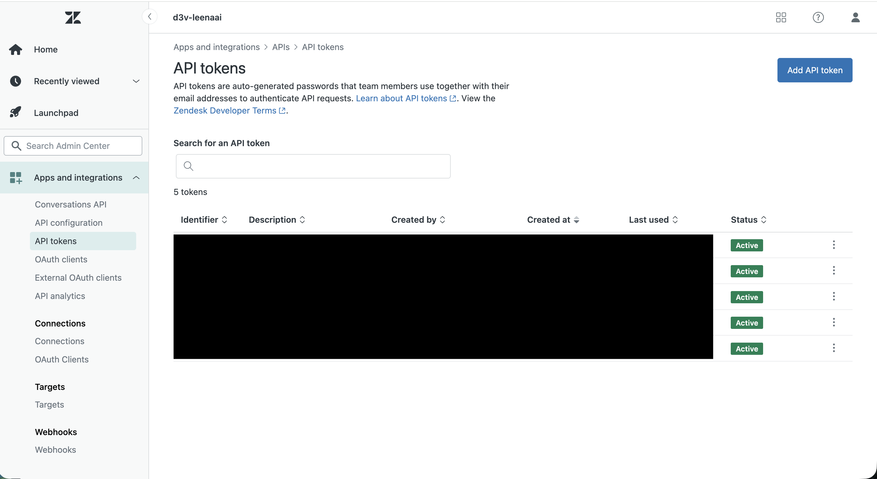 Generate API Token: Within the Zendesk API settings page, find the "API Tokens" section. Click on "Add API token".