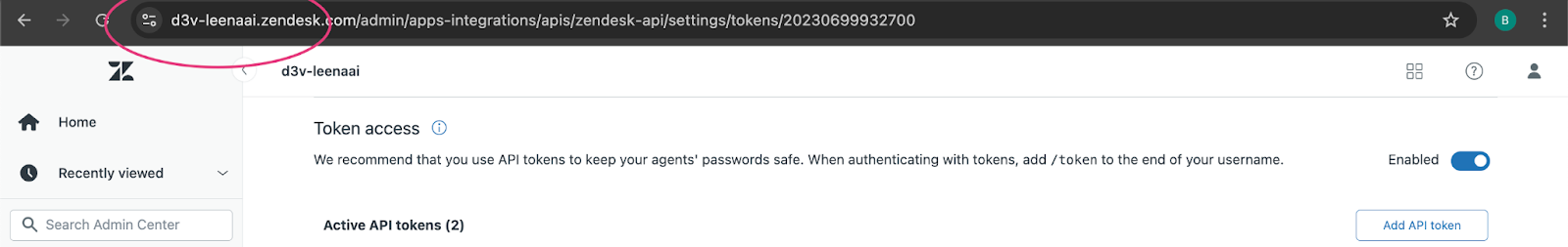 - Subdomain: This can be fetched from the URL of your Zendesk dashboard (e.g.,